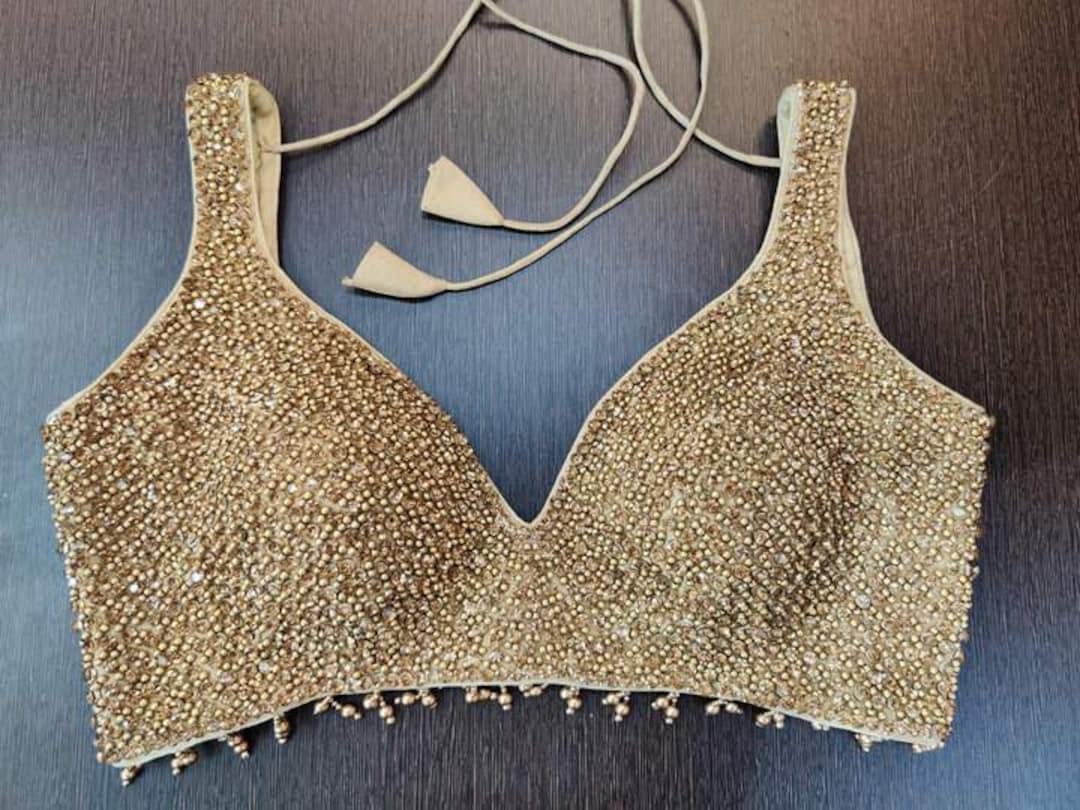 Golden Readymade Heavy Beaded Blouse Designer Saree Blouse Etsy Uk
